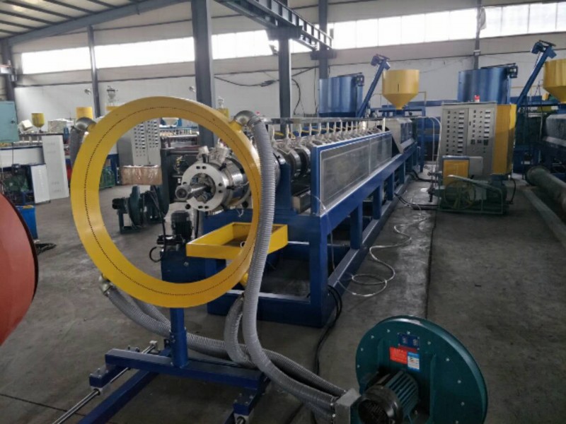 一、进料段,原料有进料段送进挤出机,包括料斗、螺杆、机筒、挤出机主电动机等部分,交流电机通过减速箱与主机螺杆连接。